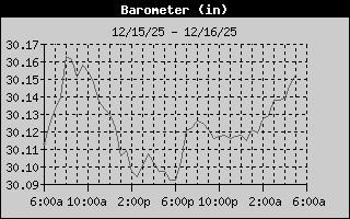 | Barometer | 30.120 in & Rising Slowly | 30.164 in at 7:48a | 29.993 in at 12:24a |