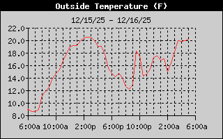 | Temperature | 13.4°F | 20.7°F at 2:11p | 8.3 at 3:51a |